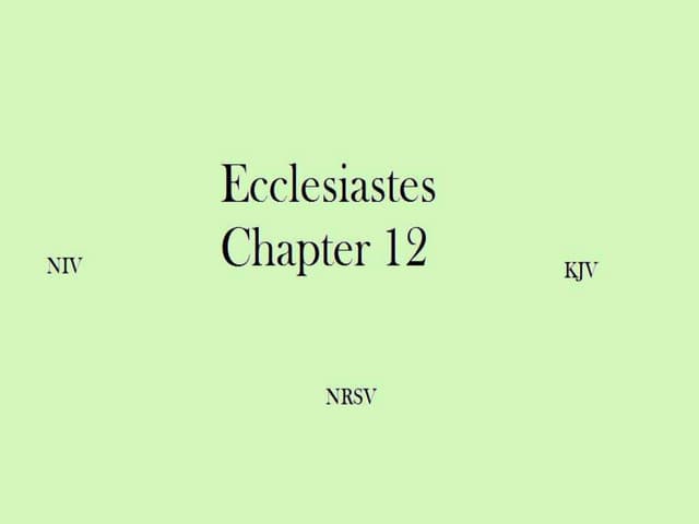 Web 25 Ecclesiastes Chapter 12 Kamis 22 Desember 2022 Revision of the American Standard Version of 1901 Ed. Before we start studying Ecclesiastes 12 meaning I want to deal with a few matters before we get into the text. Such is the wife who does not make her husband happy.